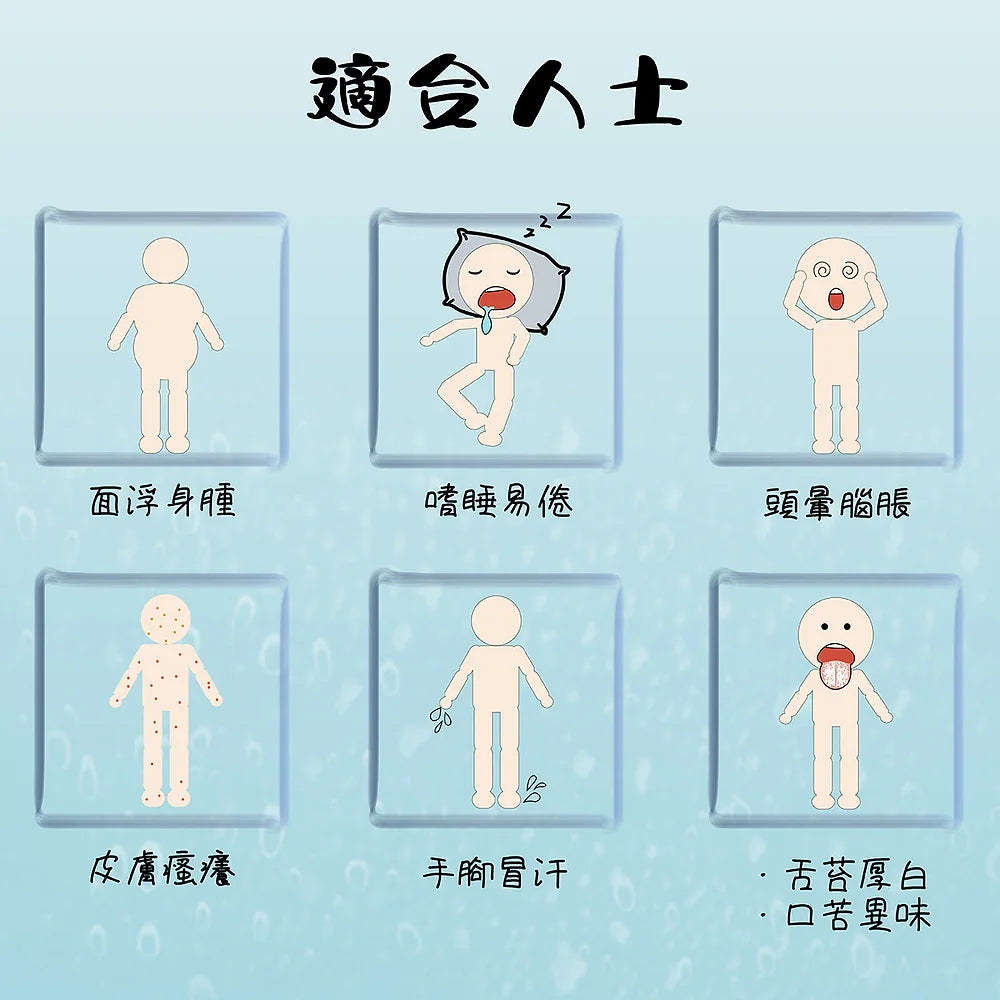 適合關注人士:嗜睡易倦、頭暈腦脹、面浮身腫、舌苔厚白、口苦異味、手腳冒汗、關節僵硬、便黏稀溏、皮膚瘙癢、易病難癒人士飲用。